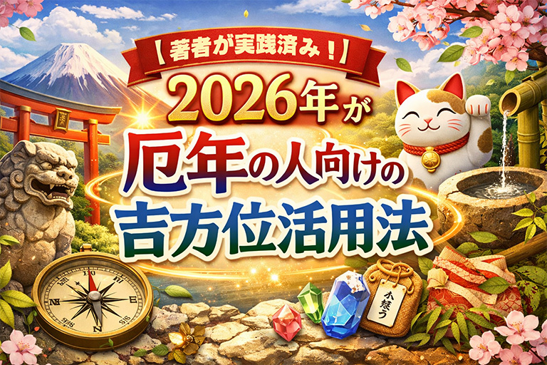 2026年に厄年を迎える方は、厄払いに加えて、吉方位・方位取り・祐気取りを上手に取り入れながら、今年を「悪い年」ではなく「整え直しの年」「運気の土台を作る年」として過ごしてみてください。